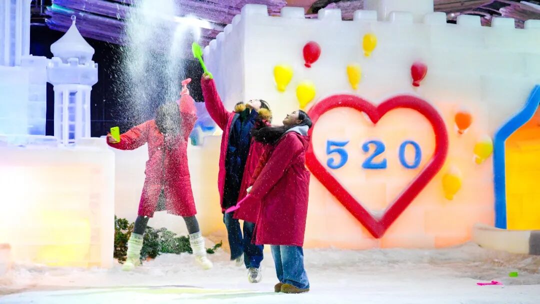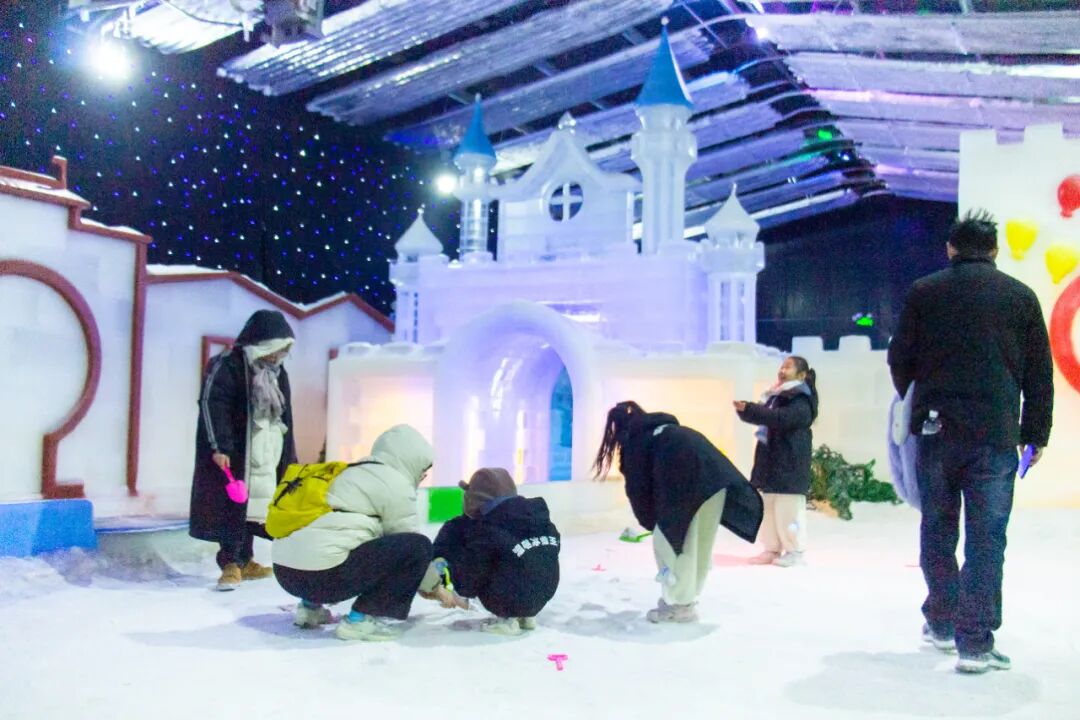 游客们还可以走进冰雪王国,在这里沉浸式感受冰雪奇境,真冰真雪、冰雪滑道,足不出甬就能感受冬日玩雪乐趣,冬日氛围感拉满。