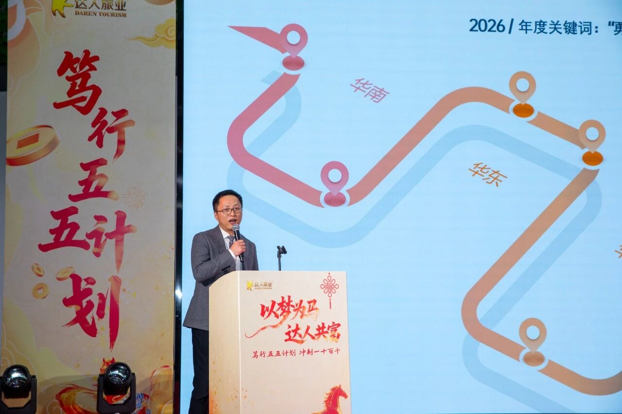 2026年,是“五五”发展计划的开端年。我们将聚焦数字代运营业务,聚力核心自营产业;践行“五五”发展计划,冲刺“一十百千”目标;让我们同心共富,向金驰行!让旅游精彩我们的人生!